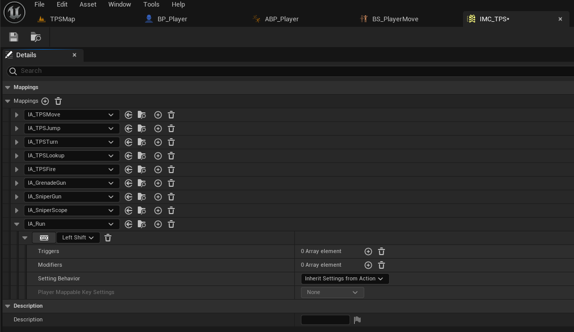 IMC_TPS에 새로운 키를 매핑한다. Left Shift 키를 새로 넣었다. 해당 버튼을 누르면 달리기 모드로 변경.