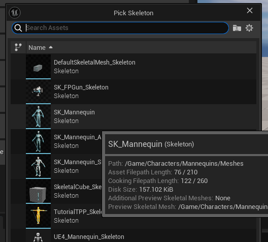SK_Mannequin 선택
