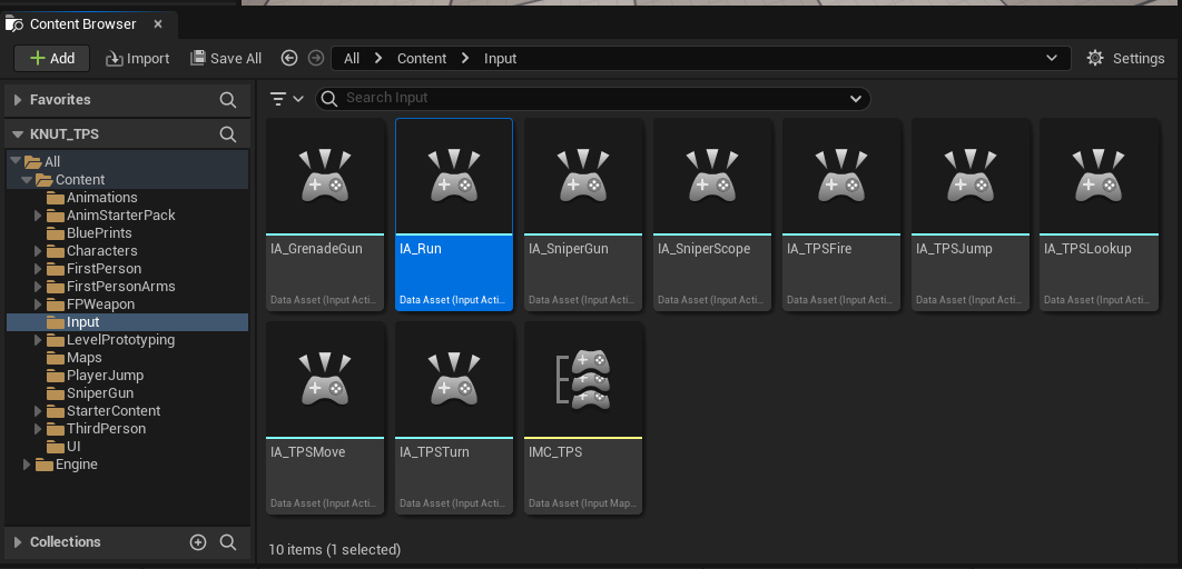 Input 폴더 내에서 IA_GrenadeGun을 복제하여 IA_Run을 생성했다.