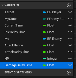 피격 후 대기시간이 필요하기 때문에 BP_EnemyFSM에서 AttackDelayTime을 복제하여 DamageDelayTime을 만들었다.