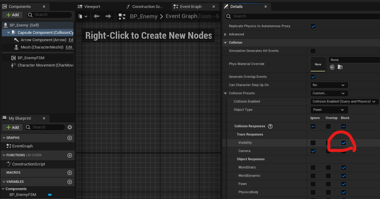 BP_Enemy의 Capsul Component의 Collider 중 Visibility를 Block으로 설정해야 한다.