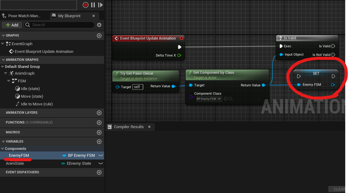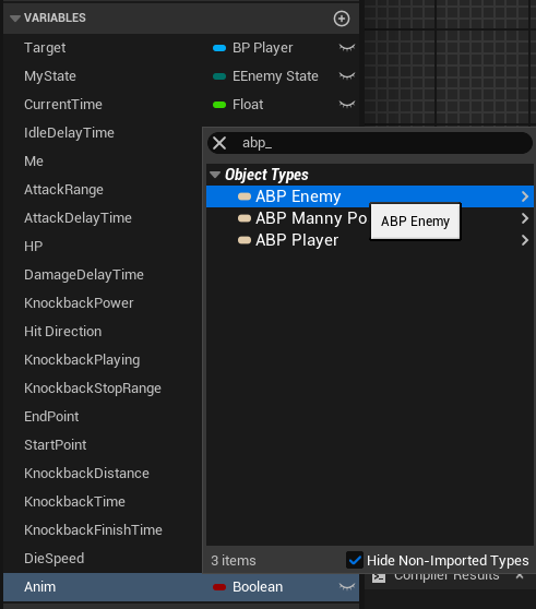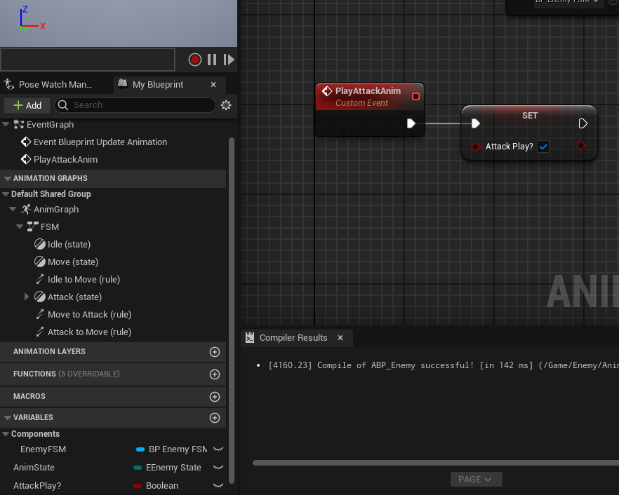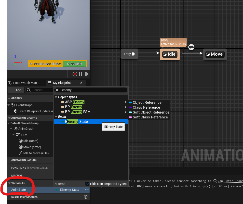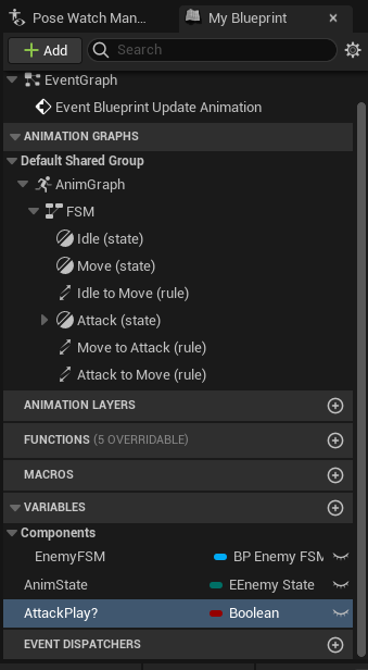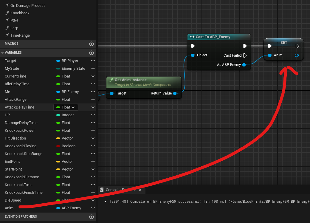좌측 아래에 VARIABLES에 "AnimState" 추가하여 FSM에서 썼던 EEnemy State로 설정했다.