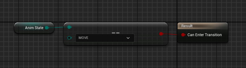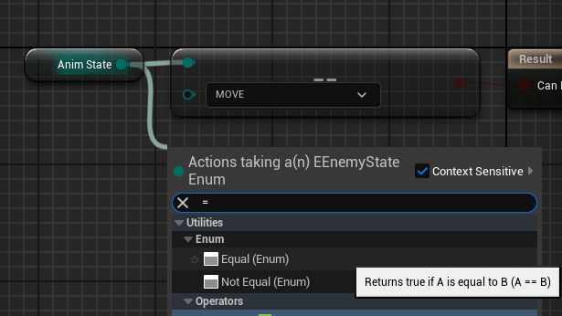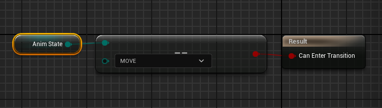 다시 Move로 향하는 트랜지션 화살표를 눌러 들어와서 방금 만든 AnimState변수 가져오고 Equal(Enum) 노드를 생성하여 Move로 설정한다.