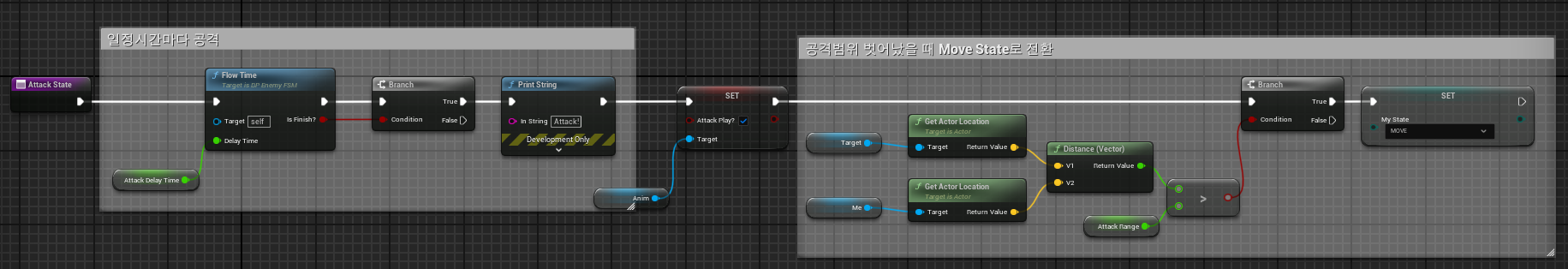 이 상태로는 공격하고 멈춰있다. 다시 AttackDelay로 돌아가지 않는다는 뜻이다.