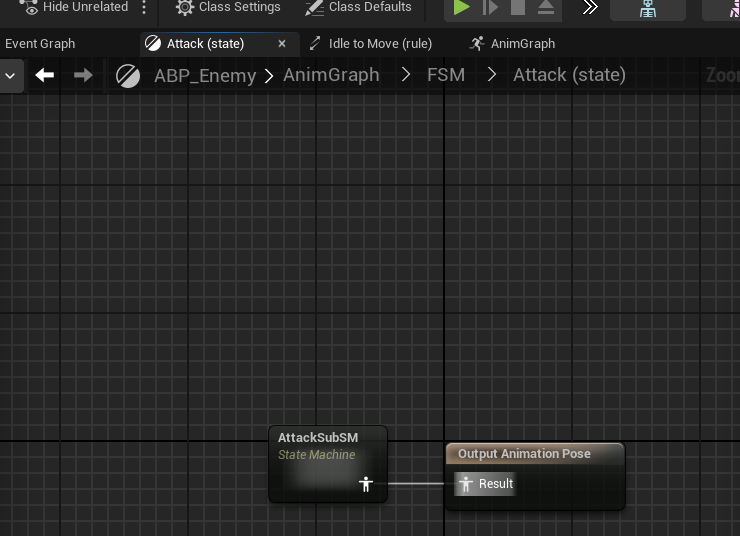 SubStateMachine을 더블클릭하여 들어와서 Attack과 AttackDelay 노드를 연결하고 Entry 노드도 연결한다.