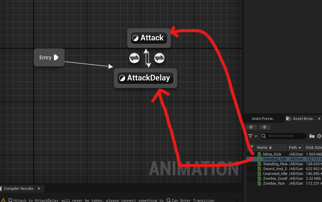 AttackDelay -> Attack 트랜지션 더블클릭, 간단하게 연결한다.