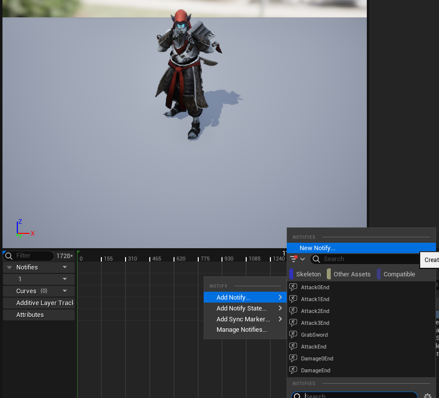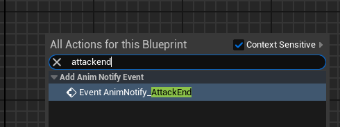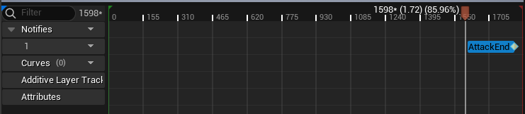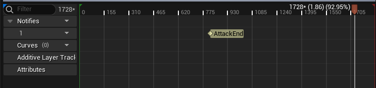 AttackEnd 이름의 Notify를 추가하였다. 거의 끝 쪽으로 옮겨놓았다.