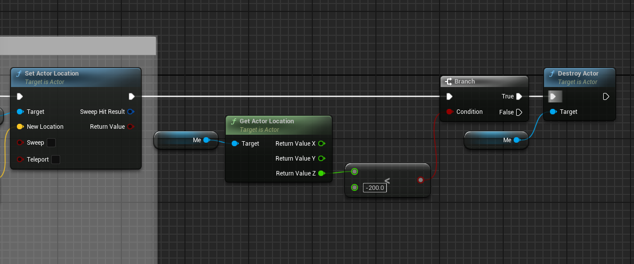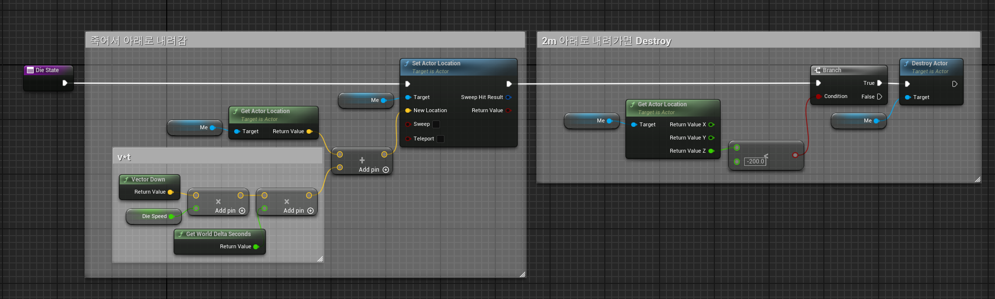 Die State 함수에서, 뒷 부분에 -200 높이 아래로 내려가면 Destory 하도록 설정했다.