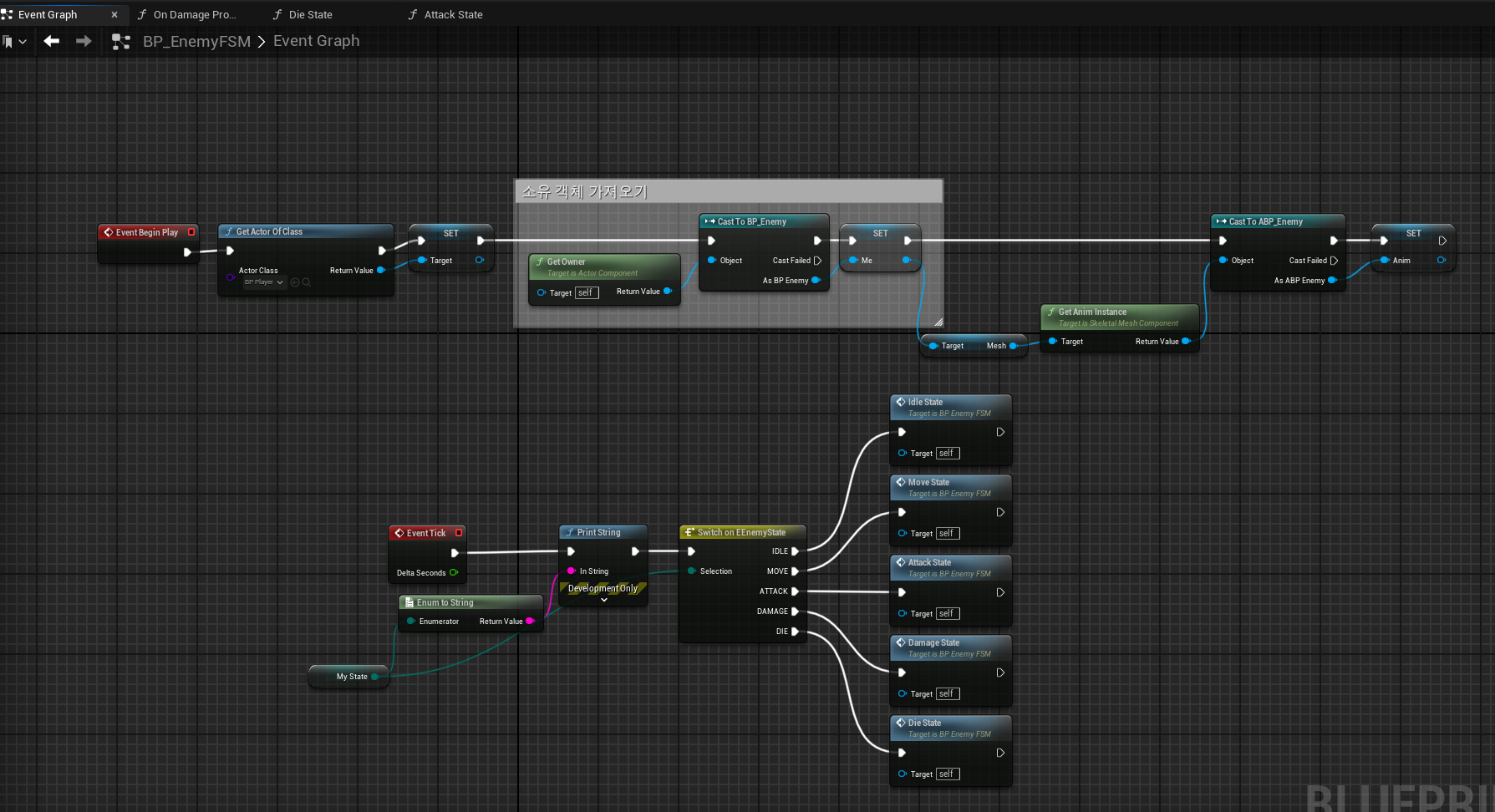 BP_EnemyFSM의 EventGraph에서 Event Begin Play 노드가 있는 부분에서, 추가를 하였다.