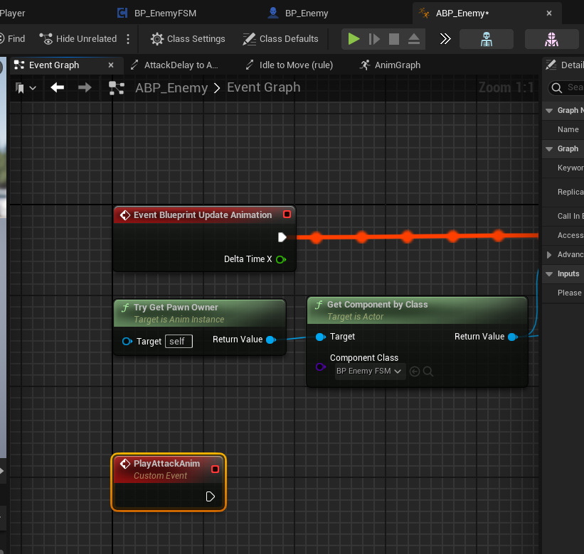 이제 ABP_Enemy의 EventGraph로 가서 노드를 생성하여 연결한다.