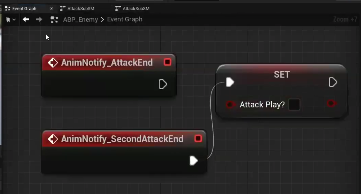 여기서 수정할 부분은, 직접 AttackPlay? 를 Set 하면서 속성을 부여하면 좋지 않다는 점이다.