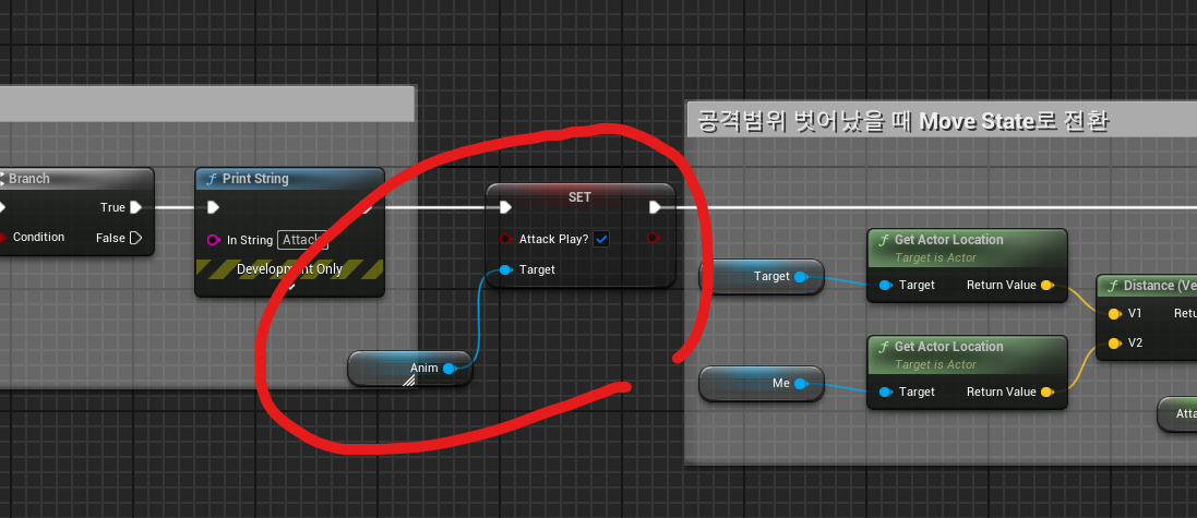 중간에 Anim 변수와 AttackPlay?의 Set을 연결했다.