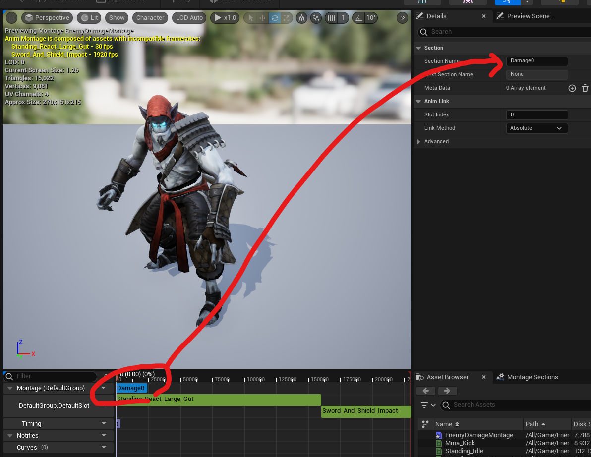 적이 죽는 애니메이션도 EnemyDamageMontage에 이어서 작업하도록 한다.