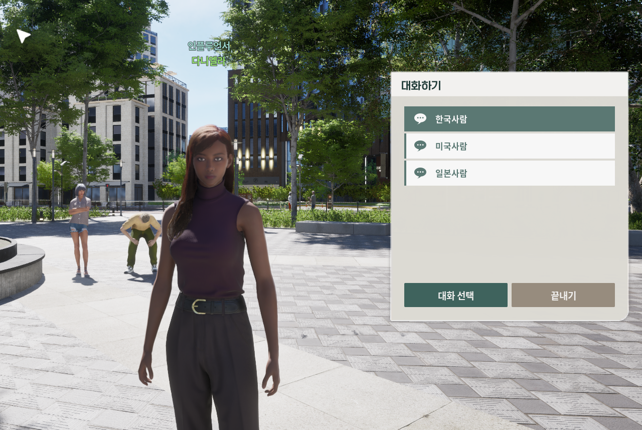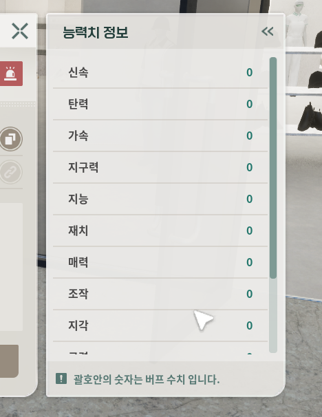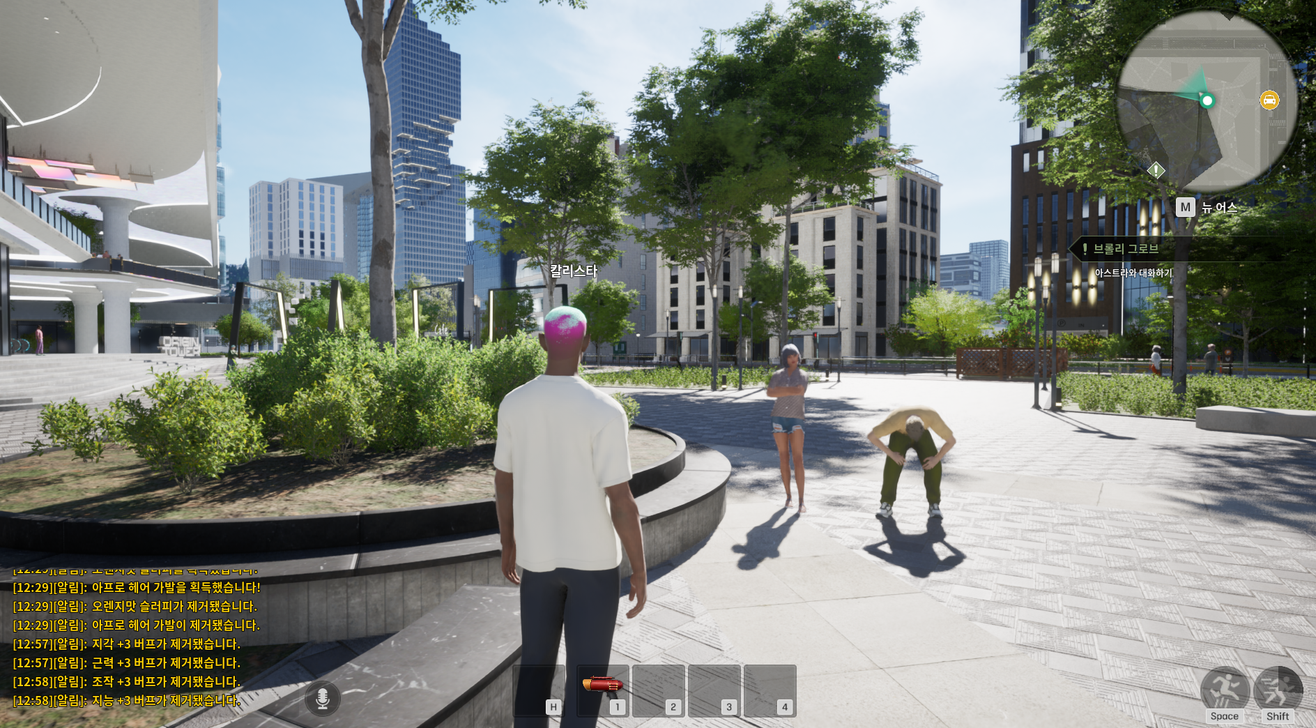다른 캐릭터를 눌렀을 때 능력치 정보가 있다. 목록을 살펴보면 능력치를 이용한 컨텐츠들이 있을 것이라고 예측해볼 수 있다. 계속 느끼는 부분이지만 디지털 트윈처럼 현실을 그대로 넣었다기보다는 게임성이 확실한 메타버스 세계인 듯.