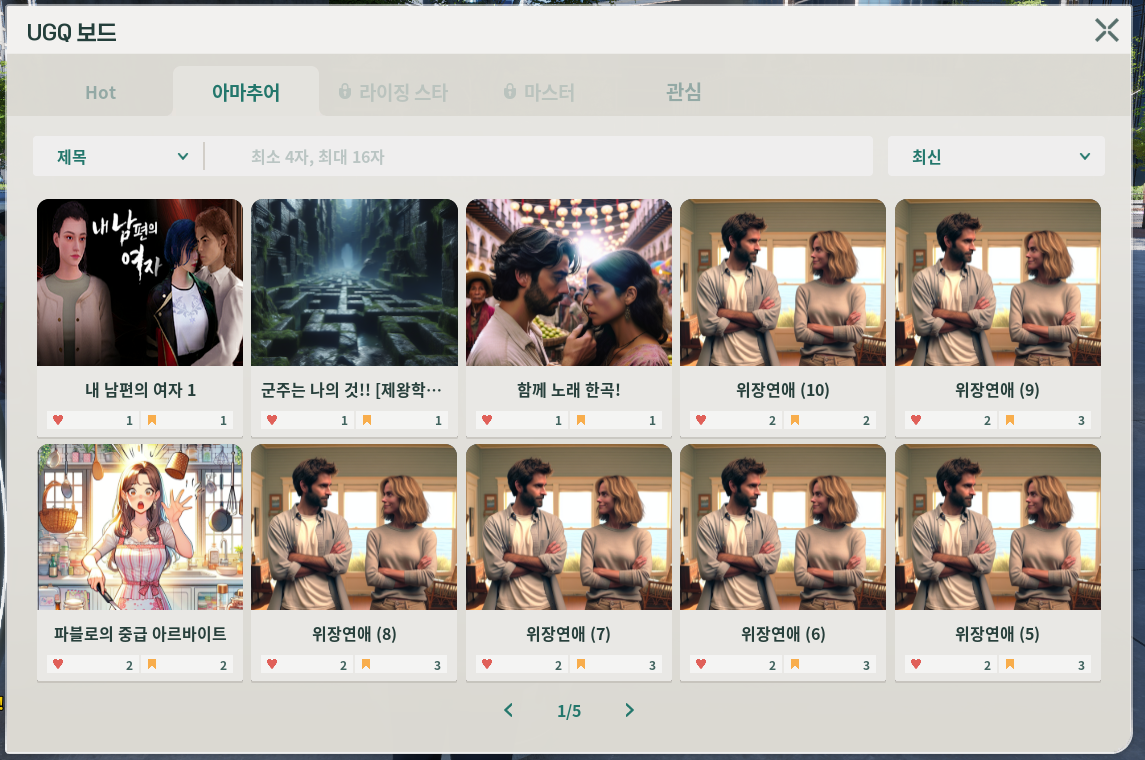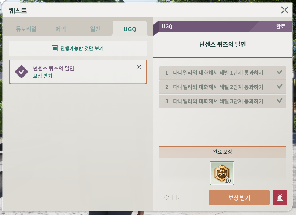 흥미로운 부분은 UGQ라는 것이 있다는 점. 유저가 퀘스트를 만들고 직접 플레이 해볼 수 있게 되어있다. 아마 오픈월드 형식의 샌드박스 게임이라면 유저들이 만든 컨텐츠를 즐기는 것이 중요하기 때문에 그런 목적으로 만들어 놓은 것 같다.