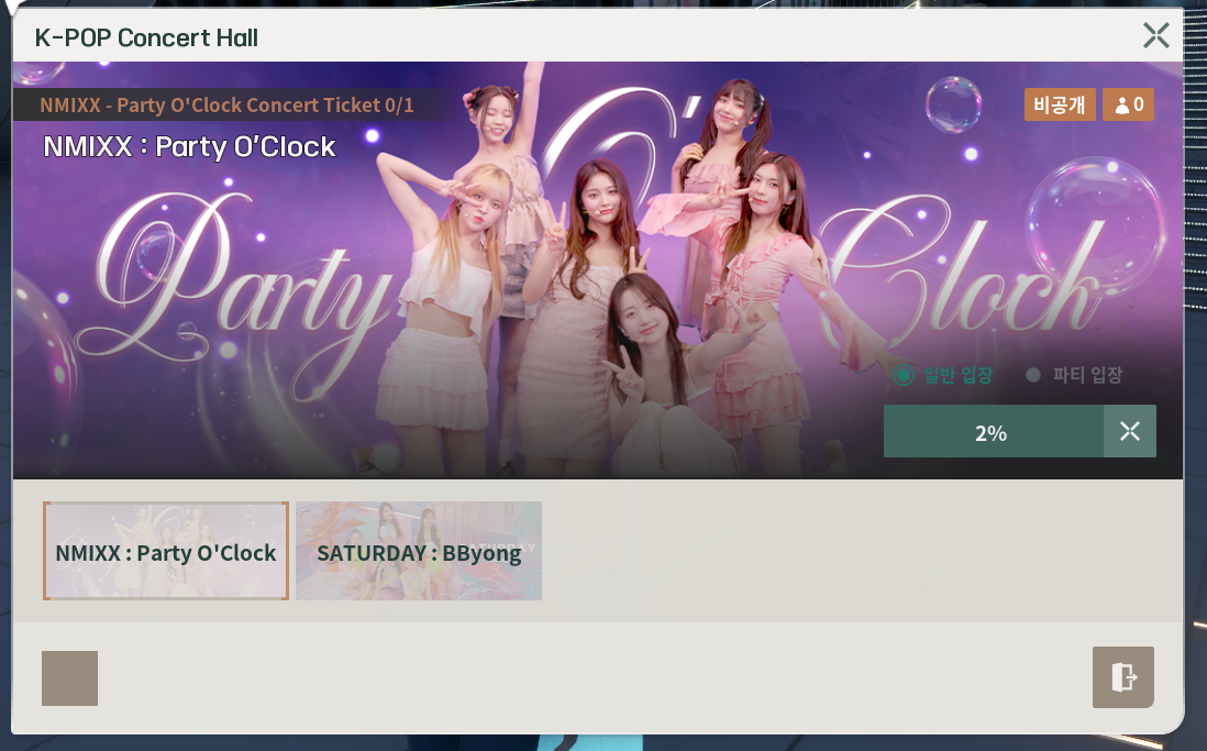 맵에서 오리진 시티 아레나를 가면 공연을 볼 수 있다. 게임 내 재화인 20 칼리움을 내고 티켓을 사서 봤는데 생각보다 퀄리티가 뛰어났다. 엔믹스 멤버들의 화질이 매우 좋았고 VR을 착용하고 본다면 훨씬 좋아질 것 같다.