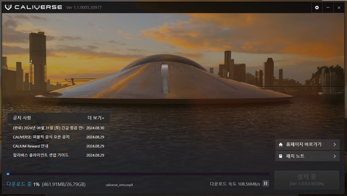 런쳐 다운로드가 완료되면 실행을 눌러 메타버스 세계로 들어간다!