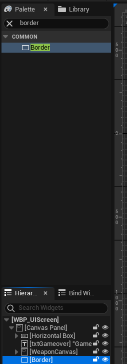 WBP_UIScreen으로 돌아가서 기본 Canvas Panel 아래에 Border 추가