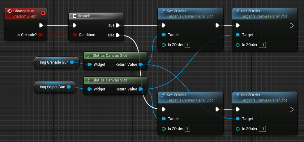 해당 변수를 가져와서 Is Grenade가 True 또는 False일 때 각 이미지의 Z Order 값을 변화시킬 수 있다.