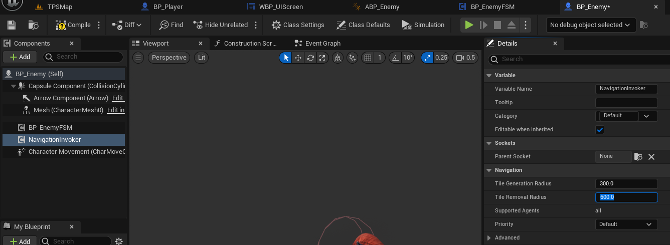 BP_Enemy에서 NavigationInvoker 값을 300, 600 정도로 줄인다.