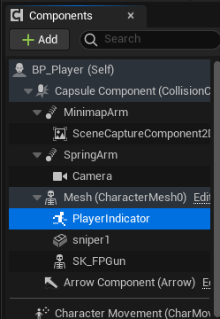 BP_Player 자체에 컴포넌트를 추가하면 된다.