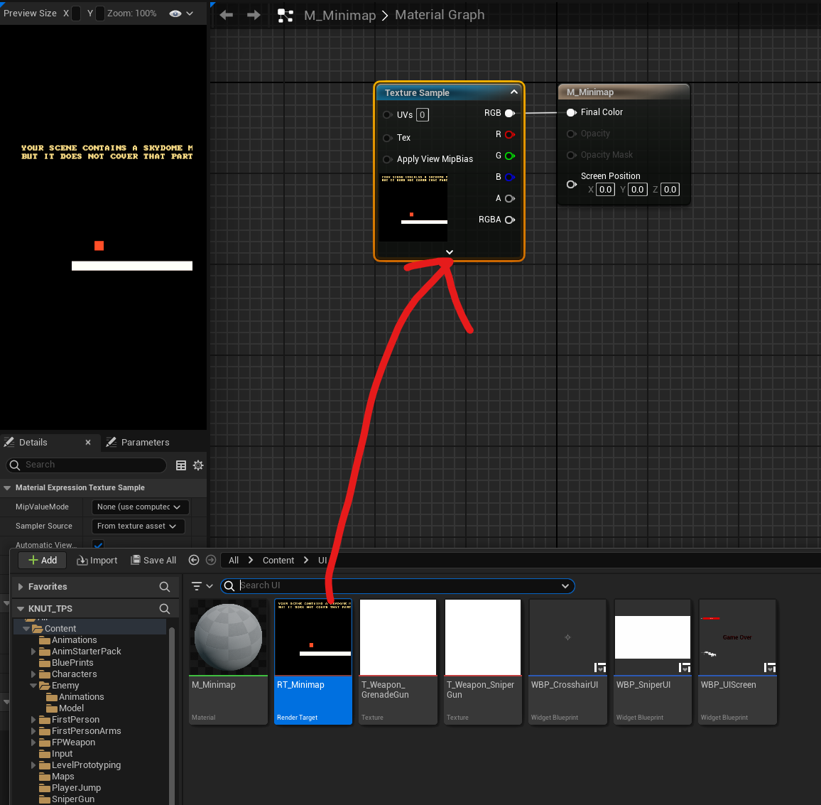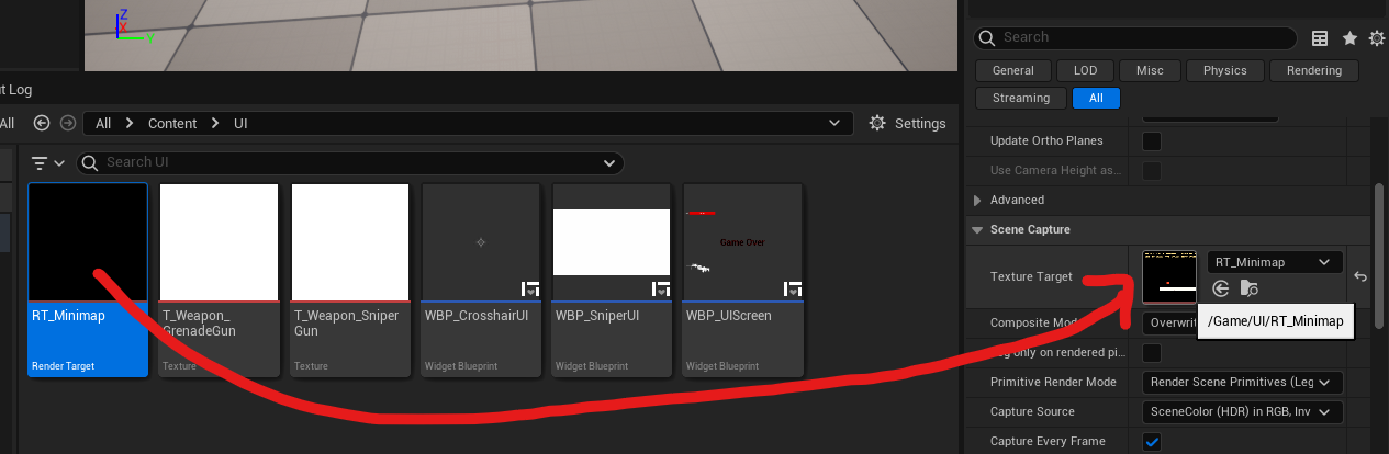 그 아래 Texture Target에 RT_Minimap을 넣는다.