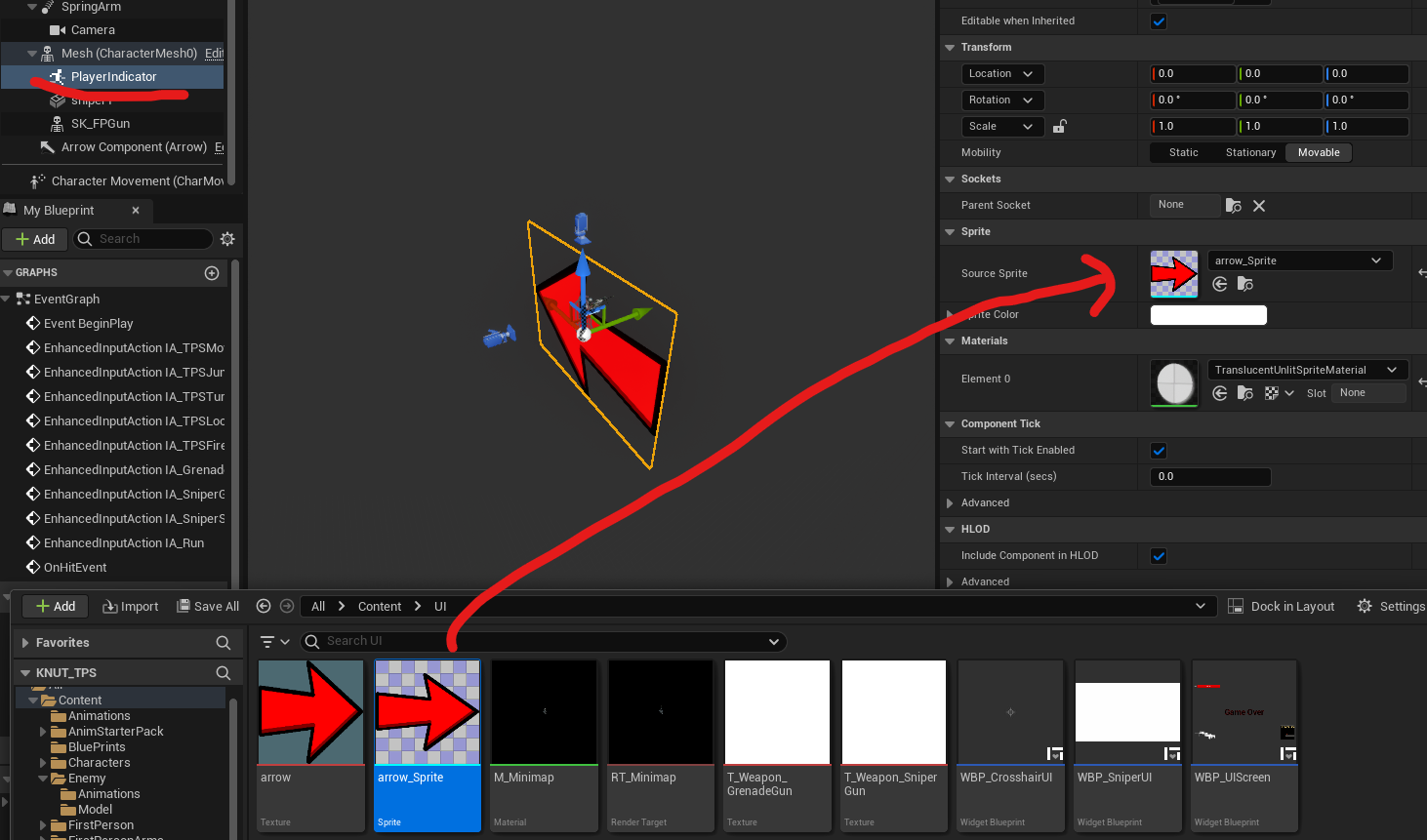 BP_Player로 와서 만든 스프라이트를 넣는다.