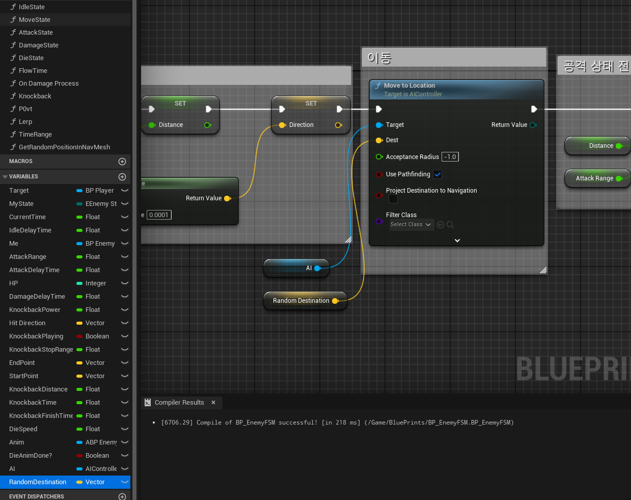 BP_EnemyFSM의 MoveState로 가서 이동 부분을 수정해야 한다.