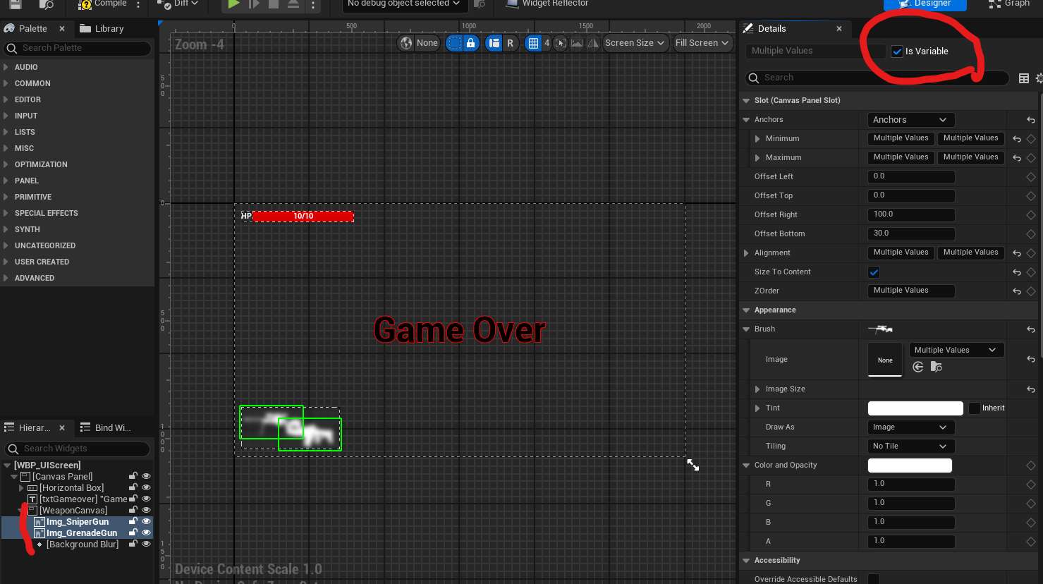 두 이미지를 선택한 후 Details 창 최상단에 Is Variable을 체크한다.