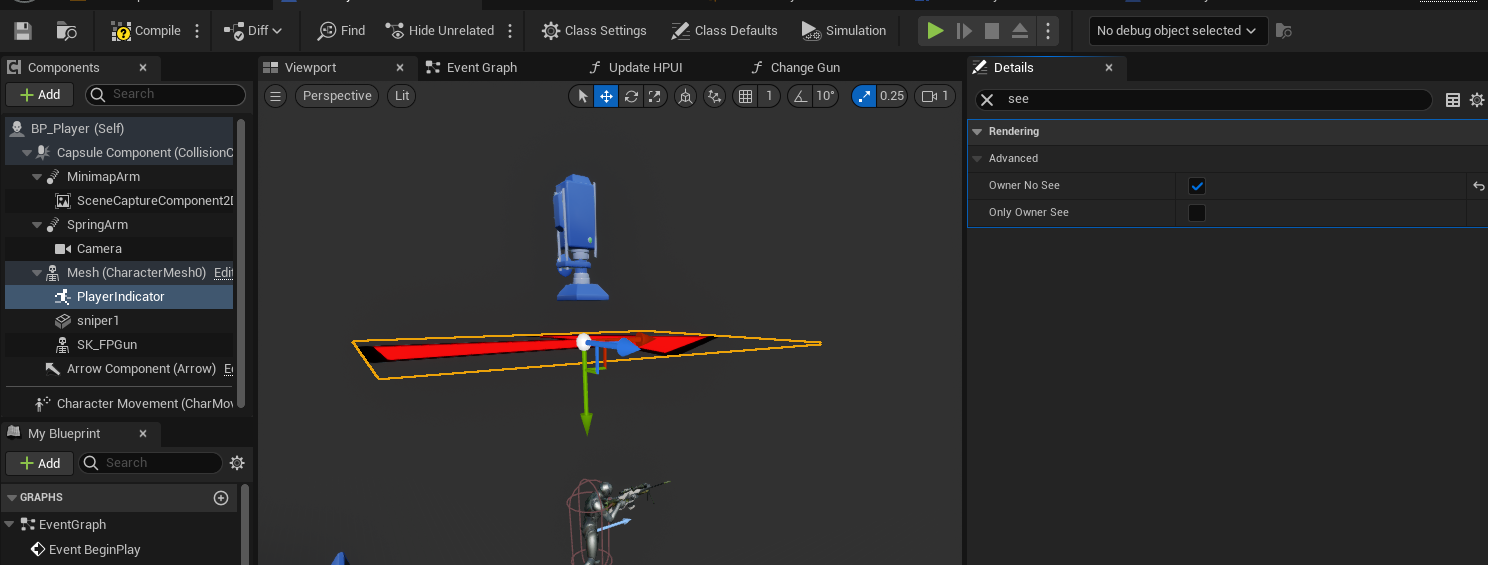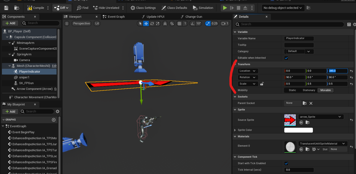 BP_Player에서 플레이어 머리 위에 표시가 보이도록 한다.