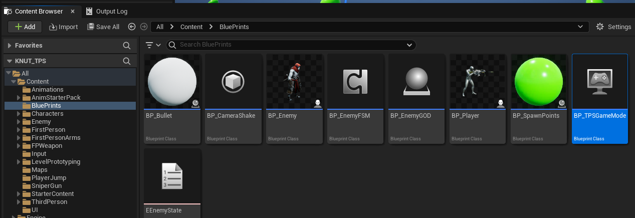 BluePrints 폴더에 BP_TPSGameMode 블루프린트를 더블클릭한다.