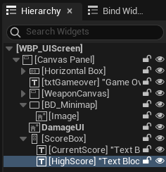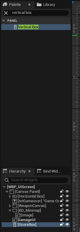 WBP_UIScreen에서, Vertical Box를 추가해서 ScoreBox 이름으로 변경
