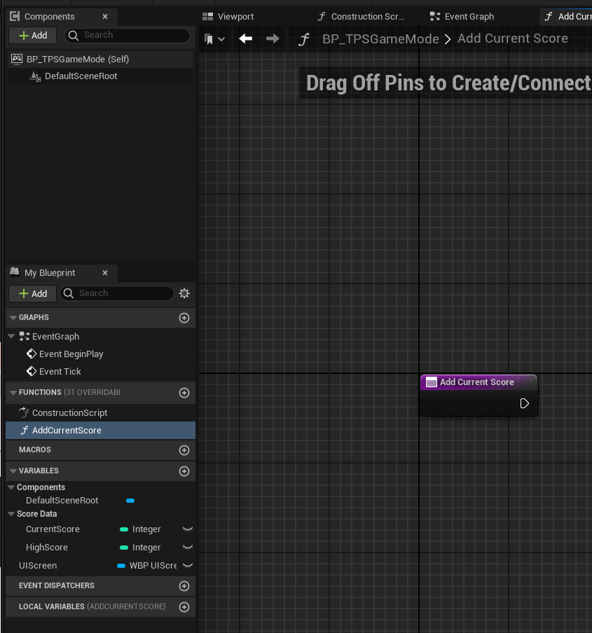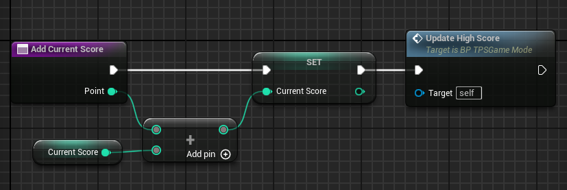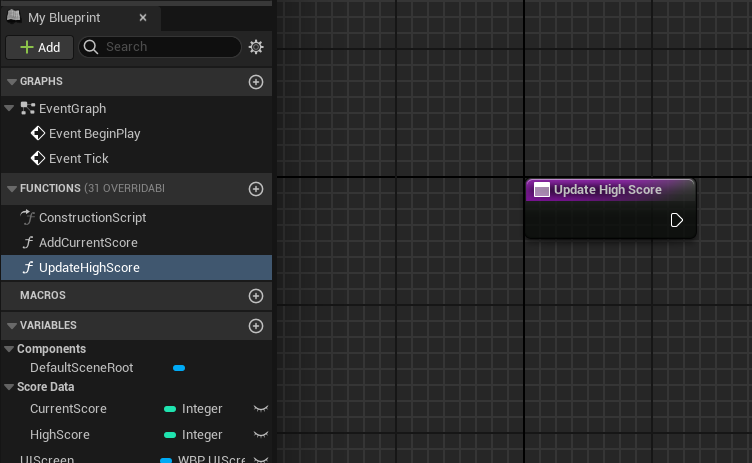 AddCurrentScore를 더블클릭해서 뒤에 UpdateHighScore 함수를 붙였다.