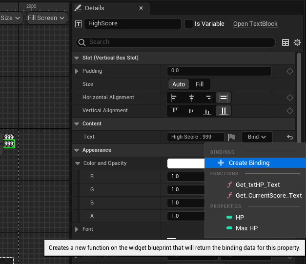마찬가지로 HighScore도 Create Binding