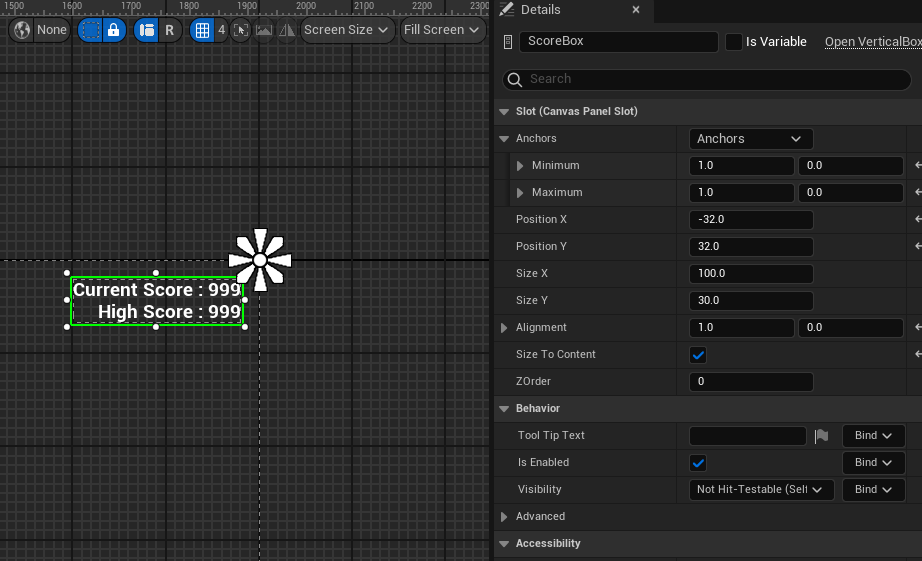 ScoreBox에 Size To Content 체크하고 Position 살짝 변경