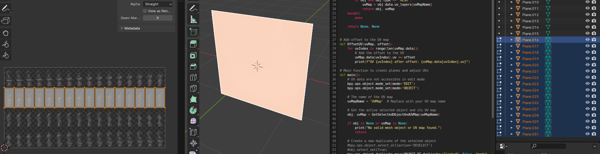 이 과정에서 각각의 Plane을 생성하여 UV 좌표를 수동으로 수정하는 것에 대한 시간과 노력을 줄이기 위해서 자동화된 스크립트를 시도하게 되었다.