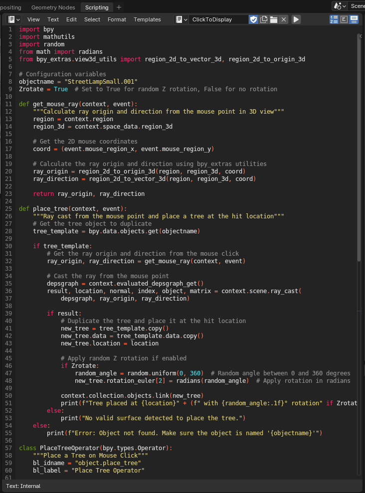 print(f"Tree placed at {location}" + (f" with {random_angle:.1f}° rotation" if Zrotate else ""))