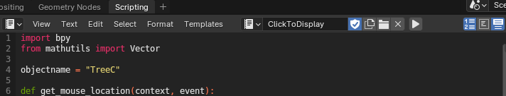 블렌더 스크립트 란에 스크립트를 붙여넣는다.