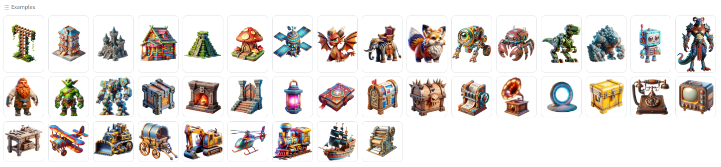 페이지 하단에는 이전의 AI Generator 보다 훨씬 많은 예시 이미지가 있는 것을 볼 수 있었다. Stability.AI와 마찬가지로 단순 일러스트레이터 이미지 보다는 이미지 안에서 빛의 영향을 받는 3D 느낌의 이미지를 사용해야 모델링 퀄리티가 잘 나올 수 있을 것 같다는 추측을 해볼 수 있다.