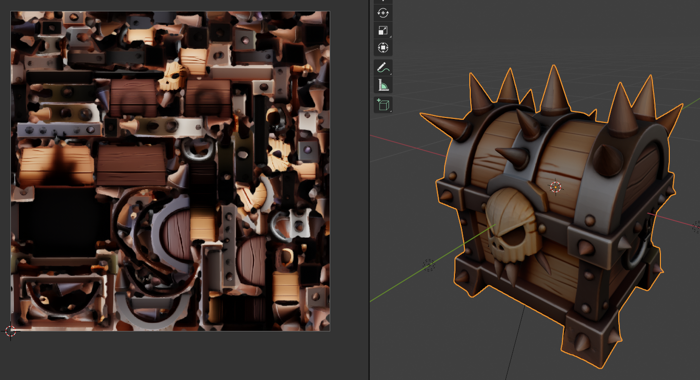 해골 장식이 있는 상자 이미지를 넣고 Generate를 누르면 우측 위에 Generated 3D Asset 이름의 칸에 회전 영상이 만들어지는 것을 볼 수 있다. 왼쪽은 기본 또는 Diffuse 맵이, 오른쪽은 Normal 모습을 보여주는 듯 하다.