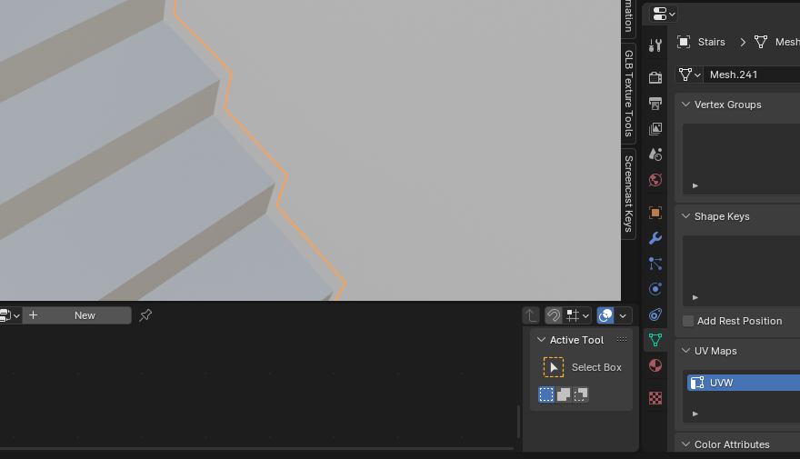 계단 오브젝트는 UVW 이름의 UV 맵을 가지고 있다.