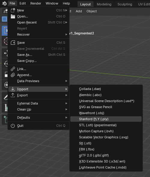 - 이제 블렌더를 열어서 ply 파일을 import 한다.
