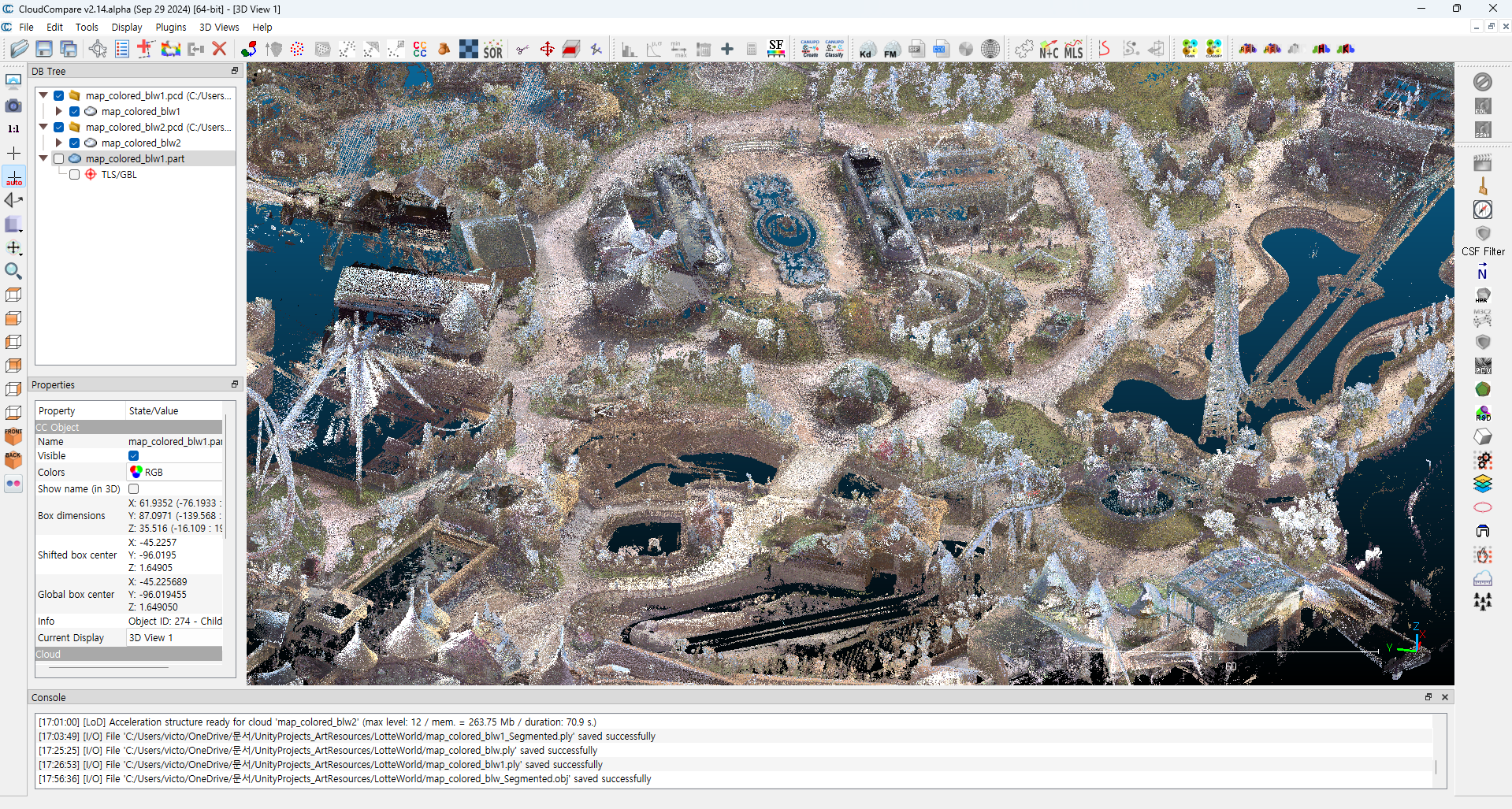 - CloudCompare 프로그램을 이용하여 pcd 파일을연다.