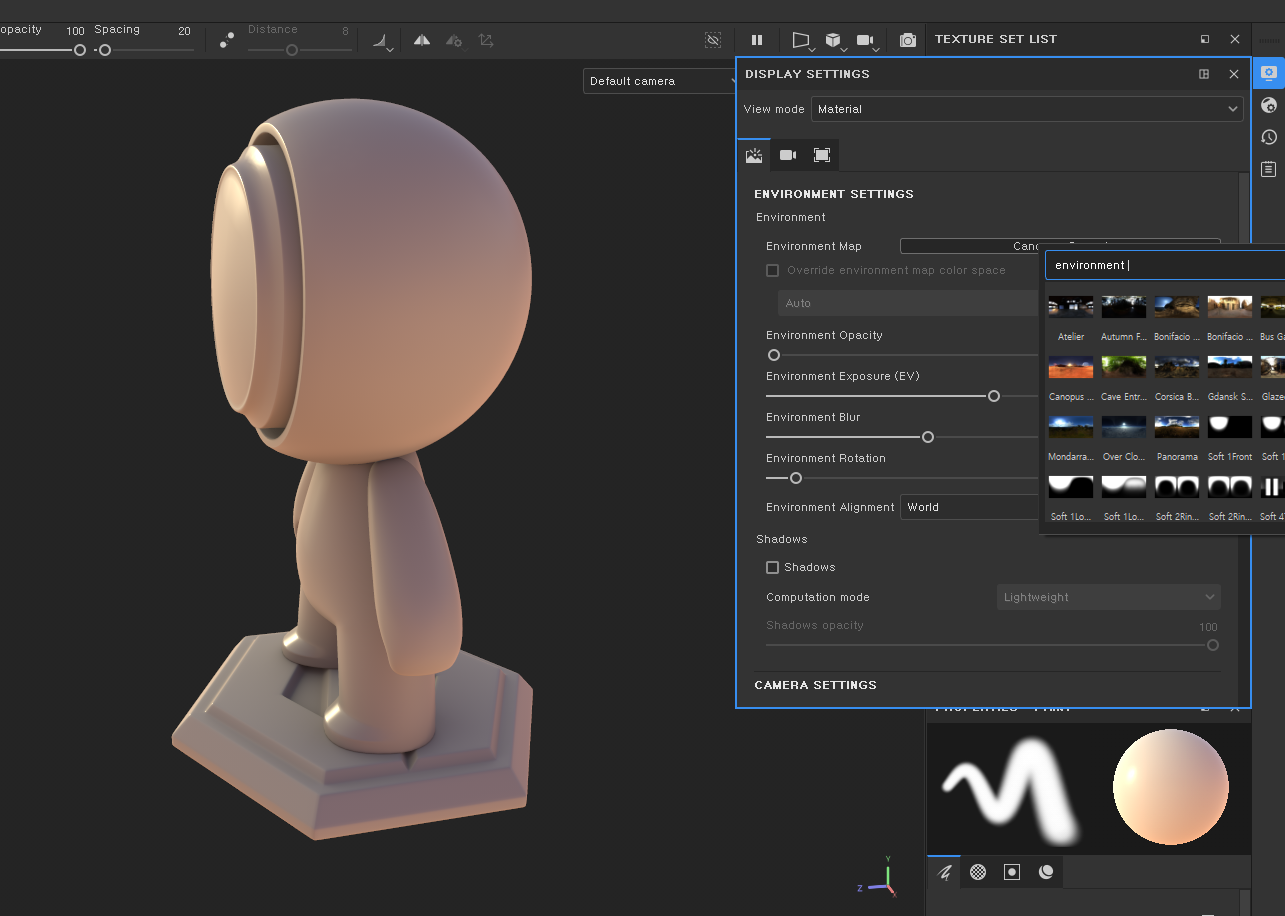 - 객체 위에서 ctrl + alt + 마우스 오른쪽 클릭 또는 오른쪽 위에 [TEXTURE SET LIST] 에서 각 셰이더를 클릭하여 선택할 수 있다.