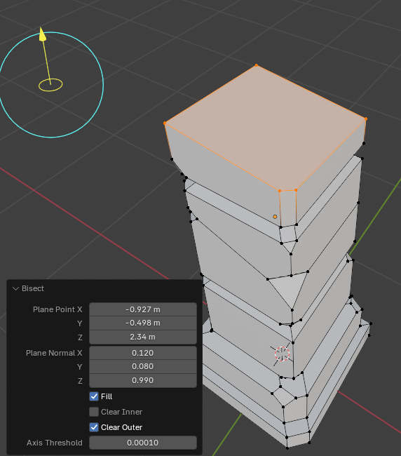 왼쪽의 기즈모 화살표를 통해 위아래 위치 세부 조정이 가능하며, 왼쪽 아래 설정에서 한쪽을 지우거나 면을 채울 수도 있다.