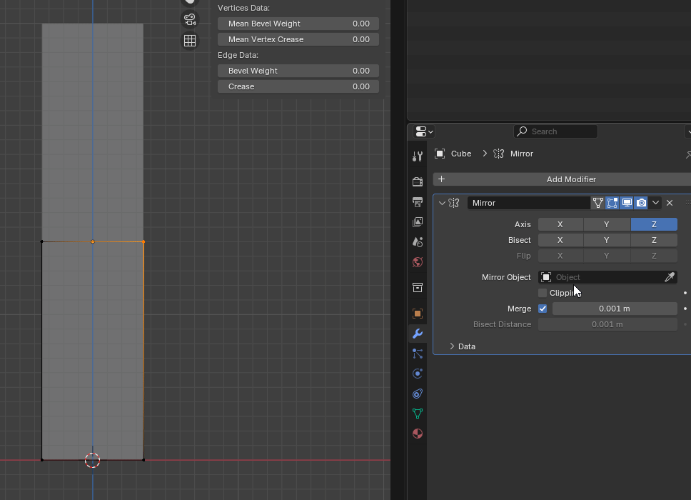 Mirror를 사용하기 위해서는 오브젝트의 origin이 Mirror의 기준에 잘 위치해야 한다.