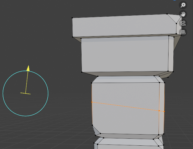 기둥 중간에 선이 없는 부분은 이미 구조가 변경되어 [Ctrl + R] 루프컷이 잘 작동하지 않으므로 [K] 단축키를 통한 나이프 툴로 자르면 된다.
