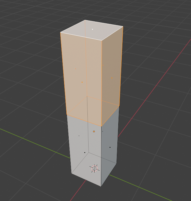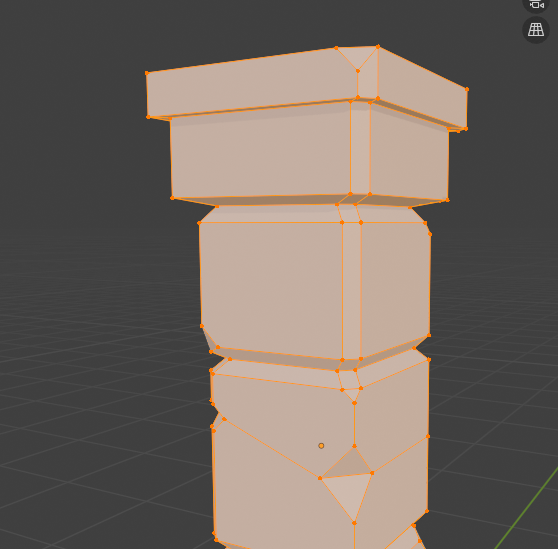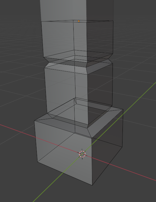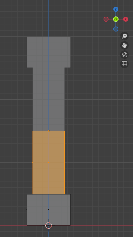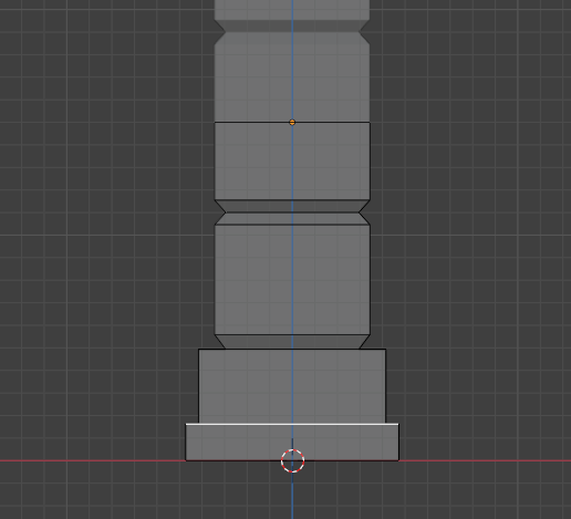 [Ctrl + R] 루프컷을 이용해서 바닥에서 살짝 떨어진 지점을 잘라준 후 면 선택 모드에서 중간 기둥이 될 부분을 선택하여 [E], [S], [Shift + Z]를 눌러서 Z축에 영향을 주지 않는 스케일이 작은 기둥으로 수정한다.