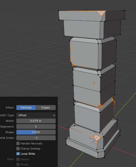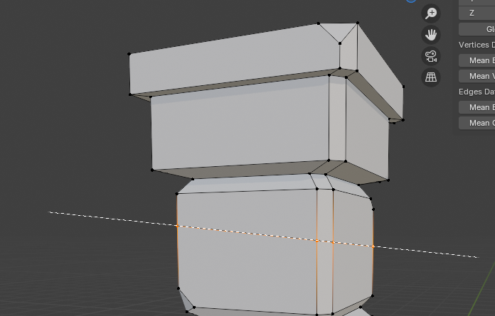 돌 중간에 있는 점 또는 선을 잡고도 모양을 만들 수 있다. (베벨, [G], [G]로 슬라이드)