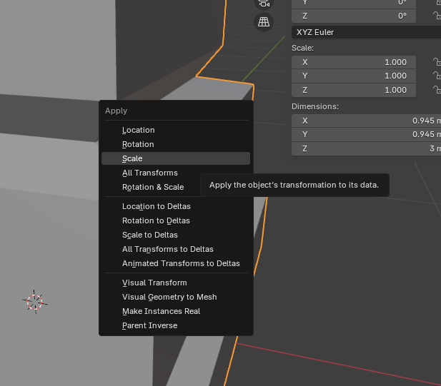 [Ctrl + A]를 이용해 Scale Apply를 한다. 처음과는 다른 모양을 볼 수 있다.